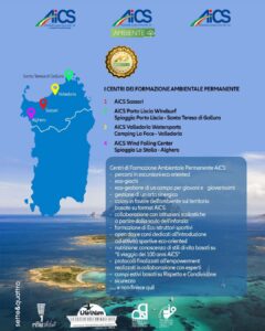Partono dalla Sardegna i Centri di formazione ambientale permanente, centri sportivi affiliati ad AiCS che garantiscono a istruttori, giovani ospiti dei centri estivi, adulti e bambini una formazione adeguata al rispetto di sé e della natura che ci circonda. Gli operatori sportivi che frequentano i centri si diplomano così eco-istruttori. Quattro i centri operativi al momento: il comitato di AiCS Sassari, il centro AiCS Porto Liscia Windsurf a Santa Teresa di Gallura, il camping AiCS Valledoria Watersports di Valledoria, e l’AiCS wind foiling center di Alghero. I quattro centri saranno presentati il prossimo 1° agosto a Sassari alla presenza del presidente nazionale di AiCS, Bruno Molea.