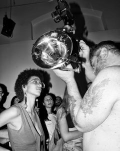 “L’idea alla base di questo progetto è quella di lavorare su una ‘non musica’ fatta di rumori senza controllo creata con un flicorno o trombone sul quale sono stati applicati un effetto voci e una fotocamera. Spostando lo strumento verso le casse amplificate, semplicemente soffiando, si genereranno dei suoni che potrò modificare attraverso l’effetto; il flicorno sarà amplificato attraverso dei jack wireless permettendomi di muovermi liberamente in un uno spazio pre-determinato, scattando foto durante la performance e coinvolgendo il pubblico – parte fondamentale dell’azione.”