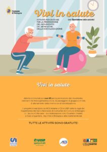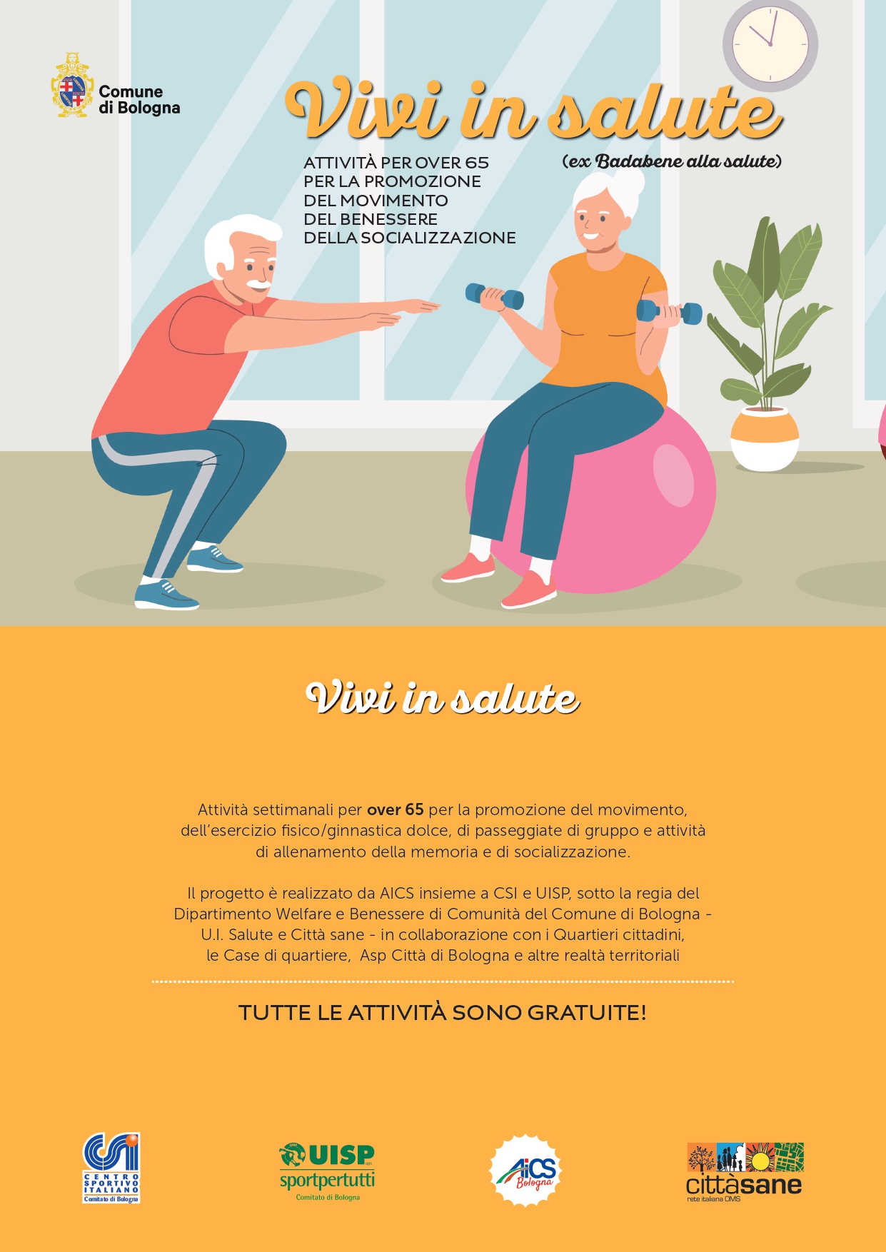 Attività settimanali per over 65 per la promozione del movimento, dell esercizio fisico/ginnastica dolce, di passeggiate di gruppo e attività di allenamento della memoria e di socializzazione. Il progetto è realizzato da AICS insieme a CSI e UISP, sotto la regia del Dipartimento Welfare e Benessere di Comunità del Comune di Bologna – U.I. Salute e Città sane – in collaborazione con i Quartieri cittadini, le Case di quartiere, Asp Città di Bologna e altre realtà.