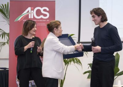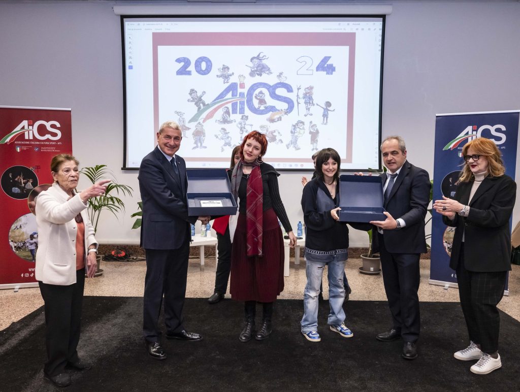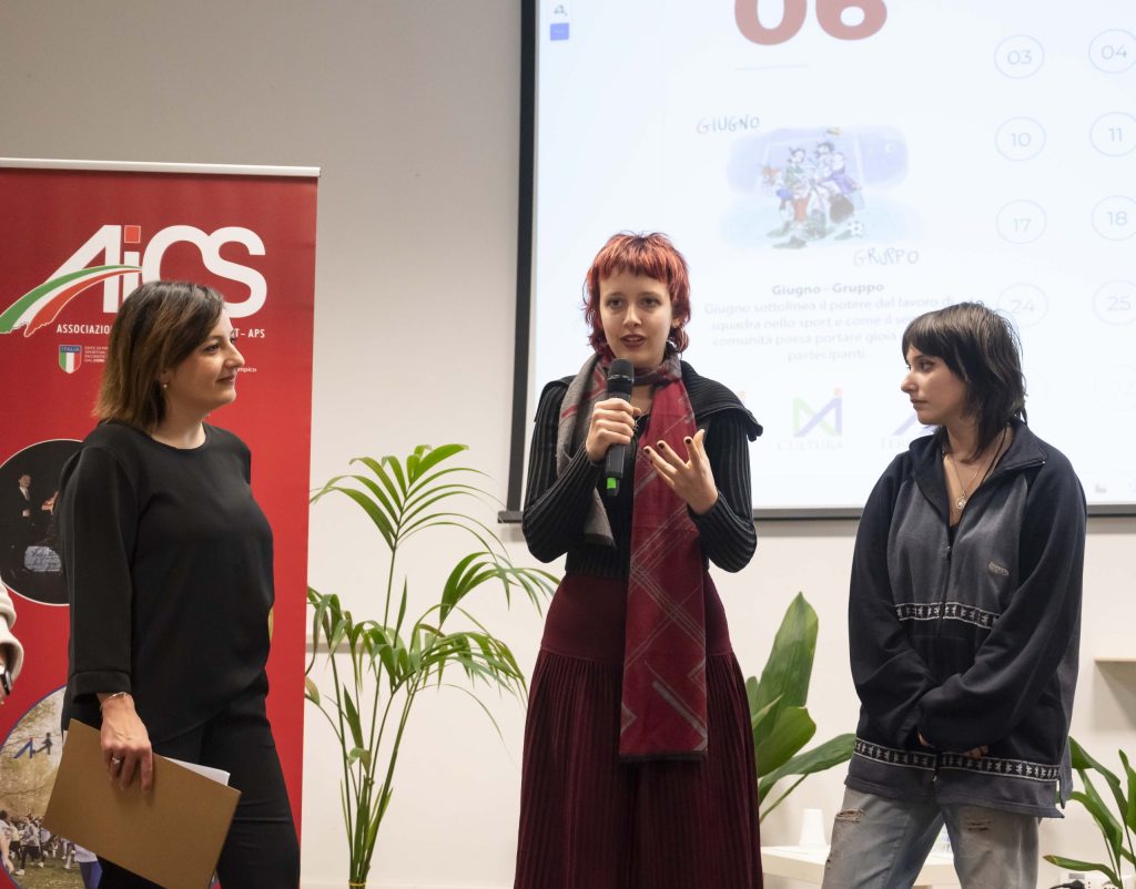 Anche per il 2024, AiCS ha deciso di affidare l’ideazione del proprio calendario ai ragazzi, e lo ha fatto indicendo un concorso di idee rivolto a tutti i Licei artistici d’Italia chiedendo loro di declinare con l’arte i valori alla base della promozione sociale e sportiva: tra le ben 90 proposte giunte, AiCS ha scelto le 13 opere frutto dell’estro e della sensibilità artistica di Priscilla Cannonieri e Lilia Ambrosio, studentesse della 3a C del Liceo artistico di Brera, sede Papa Gregorio, Milano – accompagnate dalla docente Gioia Aloisi.