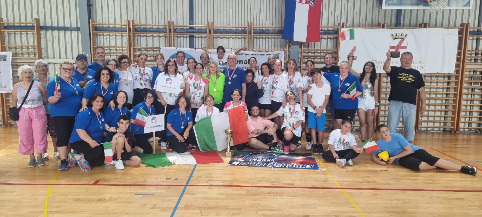 Si è tenuto nel week end dell’8 e 9 giugno in Croazia il primo campionato internazionale di Catch’n serve ball, cachibol per tutti a misura di famiglia: 9 le squadre in gara per oltre 150 partecipanti. Vince il campionato l’Italia con le donne dell’Italy Pianeta Volley Aprilia, ma risultano alte in classifica anche le ragazze dell’altra squadra italiana presente – l’AiCS Lecce.