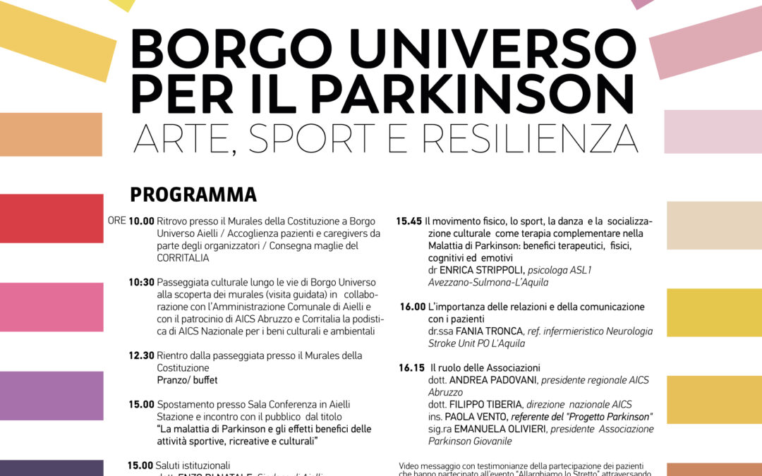 Il Centro Parkinson e Terapie Avanzate del PO San Salvatore dell’Aquila in collaborazione con l’Amministrazione Comunale di Aielli e il comitato AiCS Abruzzo organizza per SABATO 8 GIUGNO una Giornata di condivisione, di cultura e di benessere fisico dal titolo “Borgo...