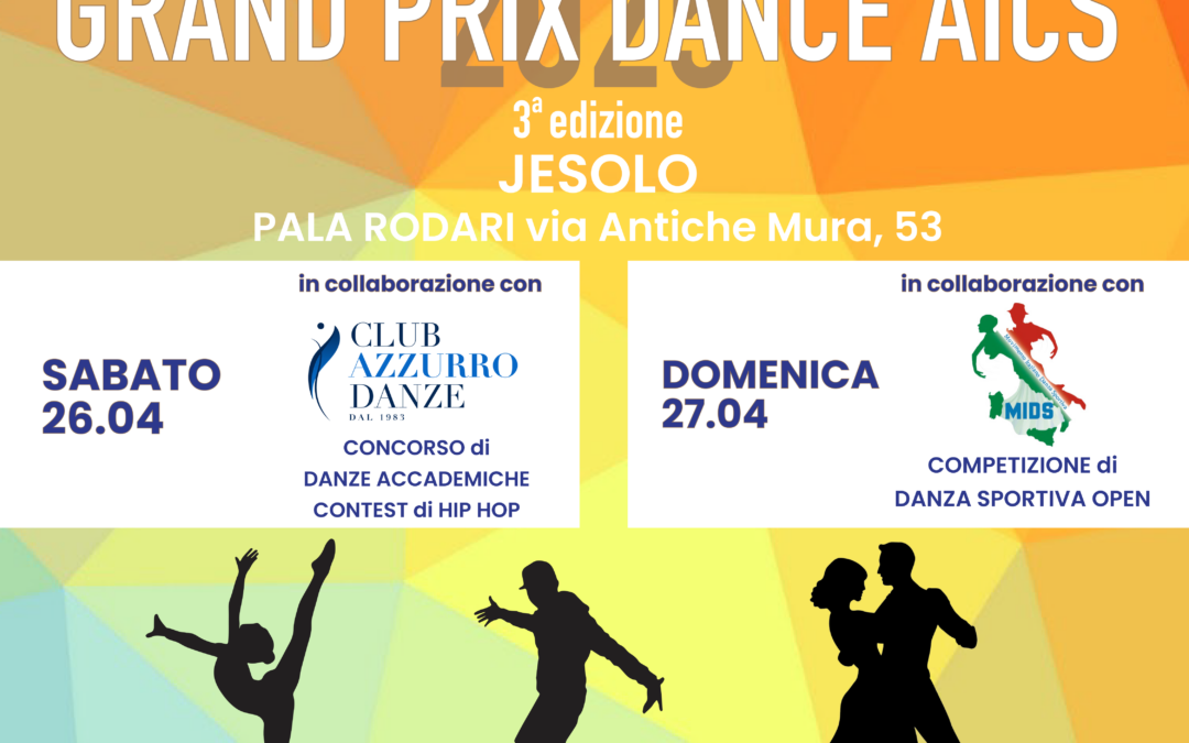 Al Palazzetto Rodari – Jesolo, il 26-27 aprile AiCS Comitato provinciale di Venezia presenta il 3° Grand Prix Sunrise Dance che si terrà il 26 e 27 aprile al palazzetto Rodari via antiche Mura di Jesolo (Ve). La manifestazione è a carattere sportivo ed è dedicata alla...