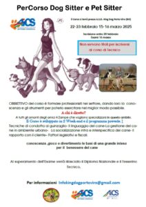 L’asd King Dog di Rovigo propone il corso per tecnico Dog e Pet sitter, a Rovigo, dal 22 febbraio. La qualifica professionale di Tecnico dog sitter e pet sitter AiCS dà la possibilità di formare Tecnici professionali di dog e pet sitter. Il corso sarà basato sulla pratica e la teoria.