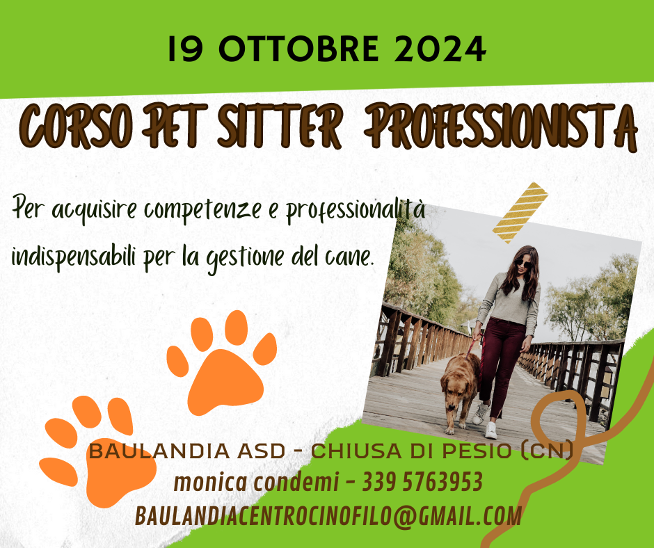 L’asd Baulandia promuove e organizza il corso per pet sitter AiCS qualificati: si terrà dal 19 ottobre negli spazi dell’Associazione, a Chiusa di Pesio nel Cuneese.