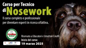 La Live Dog School propone, dal 19 marzo, il corso per tecnico cinofilo di ricerca olfattiva. Il corso è finalizzato all’acquisizione delle competenze teorico-pratiche per praticare e insegnare le seguenti attività cinotecniche sportive di Nosework: ricerca di oggetti sul settore, ricerca di persone sulla pista, ricerca di sostanze e materiali.