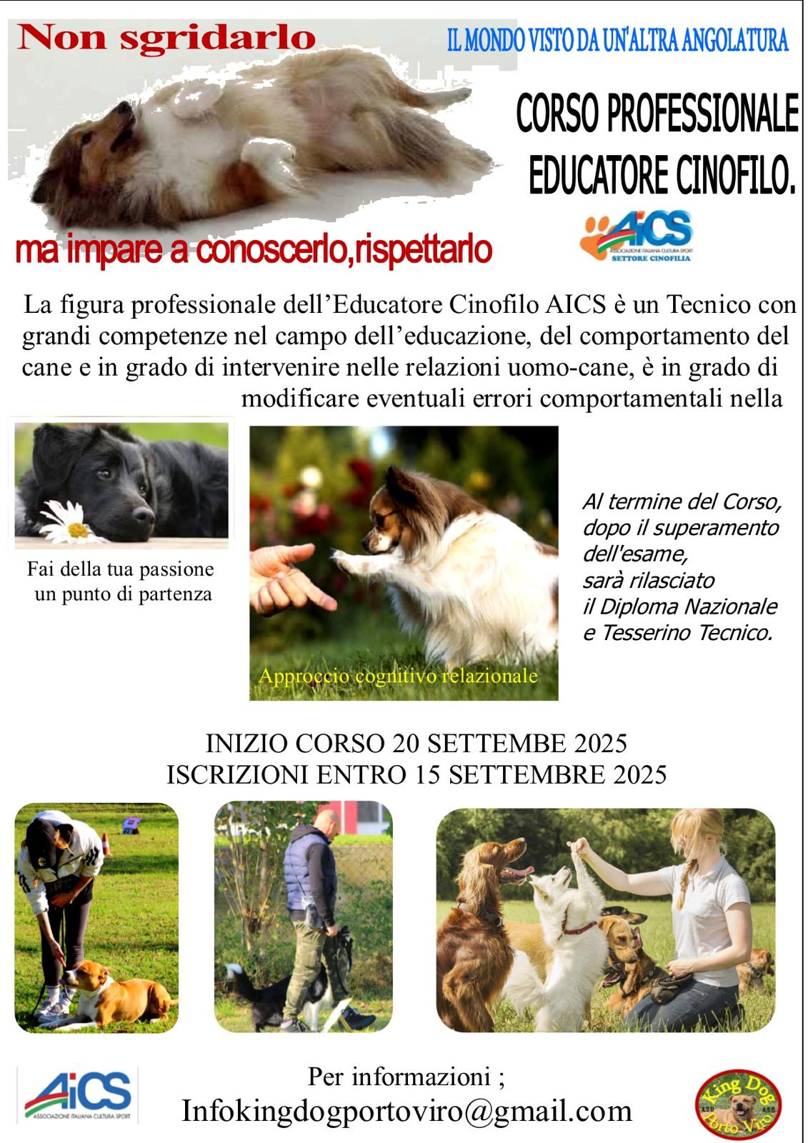 La King of dog di Porto Viro e la Silverdog di Martellago propongono una serie di corsi per educatori cinofili, pet sitter e anche giudice rally per i prossimi mesi. Informazioni nelle locandine allegate.