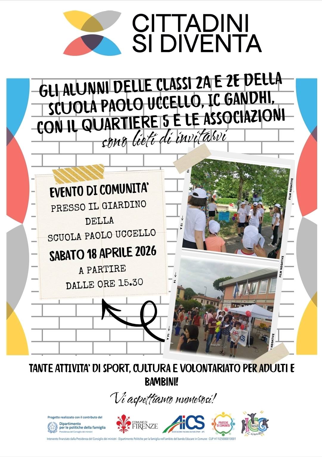 L’iniziativa del 18 aprile conferma così l’obiettivo centrale di “Cittadini si diventa”: rafforzare nei più giovani il senso di appartenenza, la responsabilità verso i beni comuni e la consapevolezza di poter incidere in modo positivo sugli spazi e sulle relazioni del proprio quartiere. Un percorso in cui AiCS continua a mettere in connessione scuola, famiglie, territorio e istituzioni, per costruire occasioni concrete di cittadinanza attiva e partecipazione.