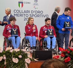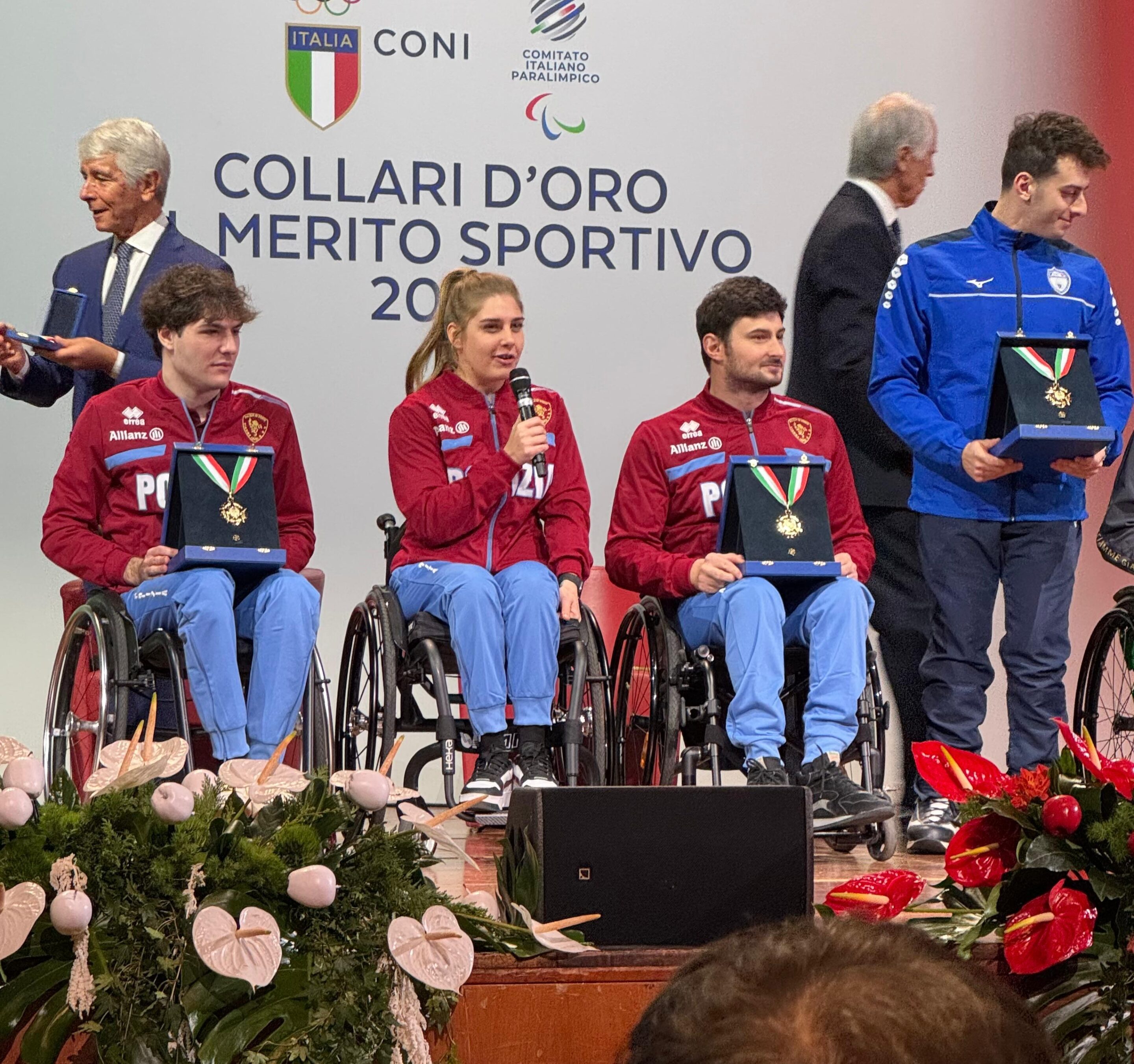 Un anno straordinario fatto di trionfi, medaglie e obiettivi raggiunti, ma anche di ostacoli e difficoltà dai quali i nostri splendidi atleti si sono rialzati con orgoglio e perseveranza. La Sala Sinopoli dell’Auditorium Parco della Musica ‘Ennio Morricone’ di Roma ha ospitato il 16 dicembre la cerimonia di consegna dei Collari d’Oro al Merito Sportivo (foto Simone Ferraro e Luca Pagliaricci CONI). Le medaglie d’oro dei Giochi Olimpici e Paralimpici di Parigi 2024, i campioni del mondo, i grandi tecnici, le società sportive e le personalità che si sono distinte nel corso dell’anno hanno ricevuto la massima onorificenza dello sport italiano in una grande festa andata in onda in diretta su Rai 2. Tra i premiati anche l’atleta Monica Boggioni, oggi campionessa di nuoto paralimpico, cresciuta tra le corsie dell’AiCS Pavia Nuoto.