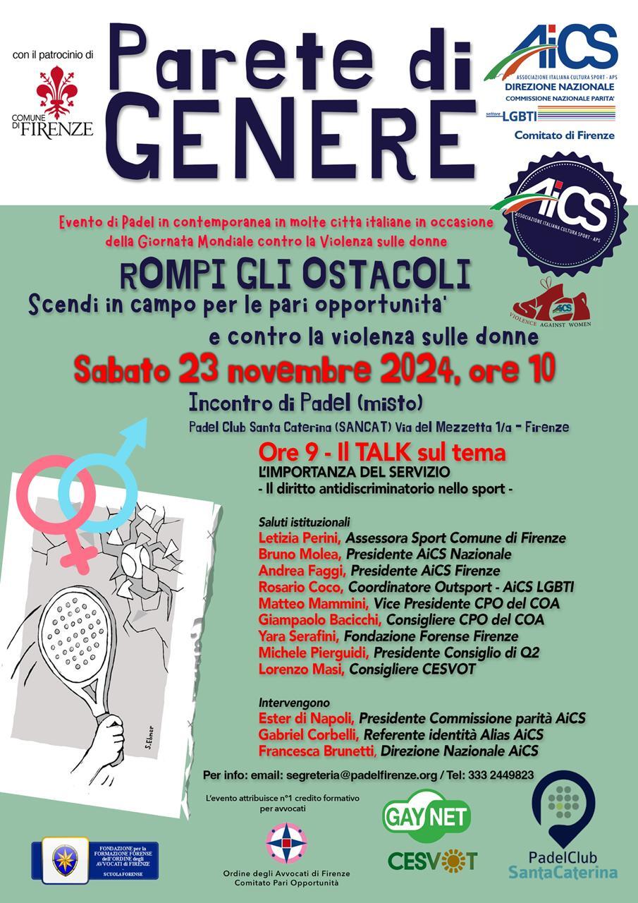 Torna “Parete di genere”: aderiscono al flash mob AiCS contro la violenza oltre 50 circoli di padel
