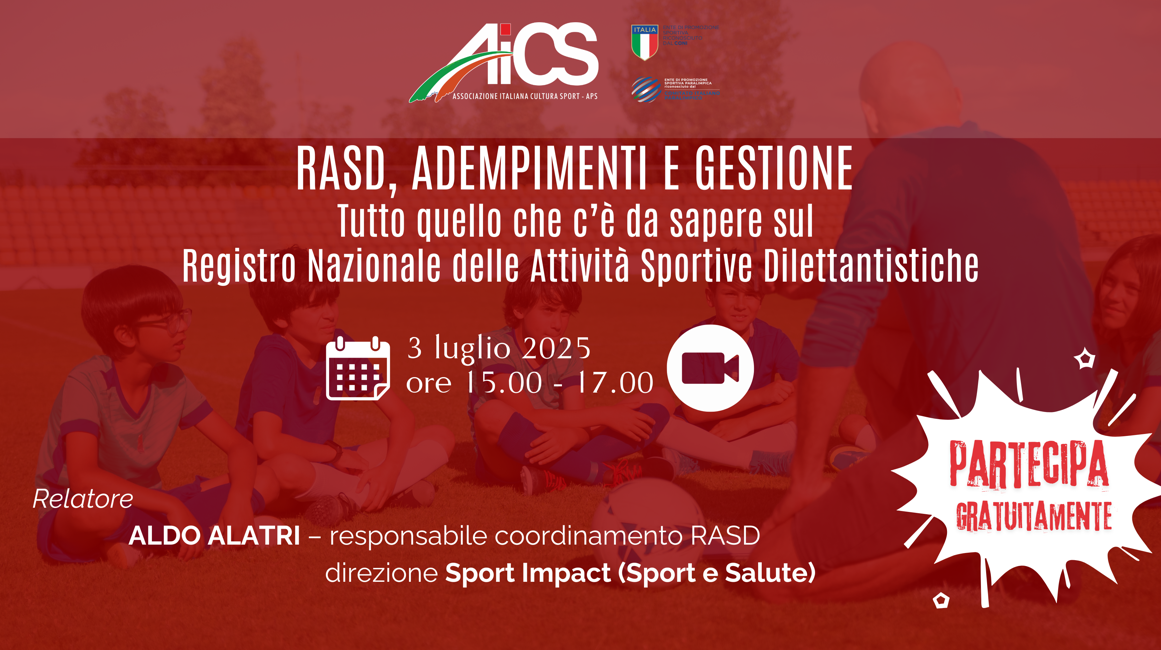 RASD, formazione gratuita per i comitati AiCS con il personale tecnico di Sport e Salute