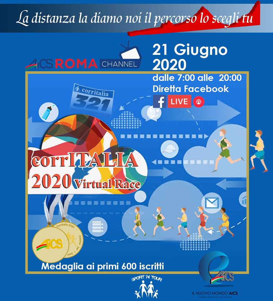 Parte da Roma, Frosinone e Avellino, ma punta a raggiungere tutta Italia la versione 2.0 del Corritalia 2020, la podistica AiCS che a causa dell’emergenza Covid si trasforma in una “virtual race”: si corre distanti, ma uniti.