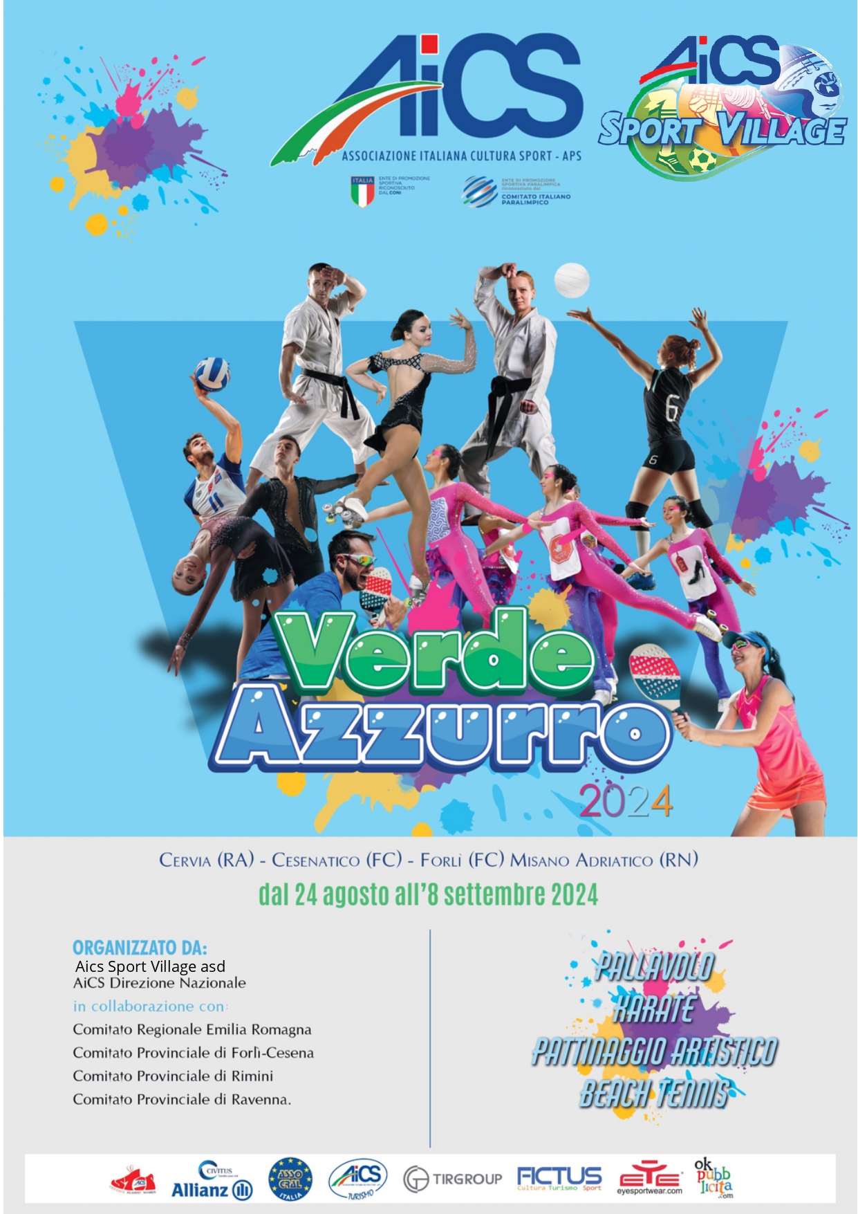 Verde Azzurro è organizzato dalla Direzione Nazionale AiCS Dipartimento Sport con la collaborazione del Comitato Regionale AiCS Emilia Romagna, dei Comitati Provinciali AiCS di Forlì-Cesena, Rimini, Ravenna e dell’asd AiCS Sport Village. La manifestazione si avvale del patrocinio della Regione Emilia-Romagna e del sostegno delle Istituzioni locali. Partner dell’iniziativa sono Allianz e Tir Group.