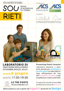 Sbarca a Rieti venerdì 6 giugno il progetto “Preventing Plastic Invasion” promosso da AiCS Ambiente, realizzato grazie al contributo del Ministero della Cultura nell’ambito del PNRR e diffuso localmente dai comitati provinciali Aics. Nel capoluogo reatino LINEA architettura-paesaggio ed il Comitato provinciale Aics Rieti, in collaborazione con SOU Rieti – Scuola di Architettura per bambini e Atelier Architettura Arte – Laboratorio di progettazione per ragazzi, propongono nell’ambito del progetto nazionale di Aics Ambiente un laboratorio gratuito il prossimo 6 giugno 𝗮𝗹𝗹𝗲 𝗧𝗿𝗲 𝗣𝗼𝗿𝘁𝗲 𝗶𝗻 𝗩𝗶𝗮 𝗱𝗲𝗹𝗹𝗮 𝗩𝗲𝗿𝗱𝘂𝗿𝗮 𝗮 𝗥𝗶𝗲𝘁𝗶, dalle 𝟭𝟳.𝟯𝟬 alle 𝟭𝟵.𝟯𝟬, dedicato al riciclo e al rispetto dell’ambiente, aperto a tutti: bambini, ragazzi e adulti. Le Tre Porte, lo spazio civico gestito dalla cooperativa sociale di comunità Campagna Sabina, ospita gratuitamente il laboratorio.