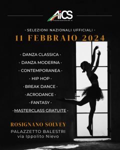 Prima selezione nazionale per la finale della People and Cultures World Dance competion 2024: appuntamento l’11 febbraio a Rosignano Solvay con prove di danza classica, danza moderna, contemporanea, hip hop, break dance, acrodance e fantasy. Il tutto assieme a masterclass gratuite. Per partecipare, danzecultureinternazionali@aics.it.