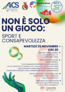 AiCS Forlì-Cesena, assieme ad AiCS Volley, promuove a Castrocaro Terme la serata “Non è solo un gioco”, martedì 25 novembre in occasione della Giornata internazionale contro la violenza di genere. La serata prevede i saluti istituzionali e, a seguire, esibizioni di Catch‘n Serve Ball, lo sport di parità che AiCS promuove in tutta Italia in collaborazione con la Federazione Catch’n Serve Ball Italia.