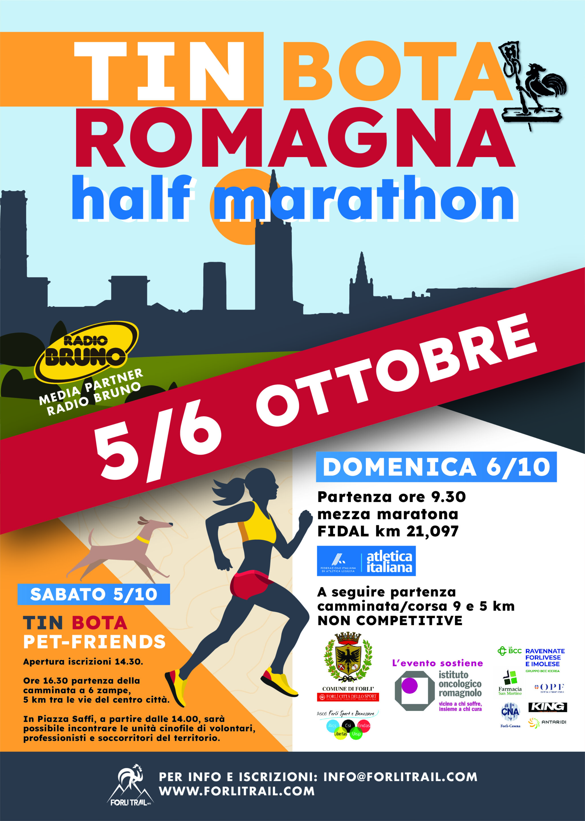 L’evento di punta dei due giorni la mezza maratona competitiva di 21.097 km, a tutti gli effetti inserita nel calendario nazionale della Federazione Italiana di Atletica Leggera partirà alle ore 9.30 di domenica 6 ottobre da Piazza Saffi, come lo scorso anno il percorso si sviluppa lungo le vie del centro verso la periferia. A seguire partiranno i non competitivi che potranno passeggiare/correre su parte del medesimo percorso dei competitivi su due itinerari di lunghezza differente 5 o 9 km. Il rientro di tutte le corse/camminate sarà sempre nella splendida cornice di Piazza Saffi dove, al termine, si svolgeranno le premiazioni finali. Quest’anno parte del ricavato verrà devoluto all’opera di ricerca dell’Istituto Oncologico Romagnolo – IOR: da diversi anni e attraverso altri eventi sportivi Forlì Trail ASD è sensibile alle iniziative e al lavoro sostenuto dallo IOR. Anche in questa occasione sulle quote di iscrizioni, un gettone verrà devoluto alla ricerca.