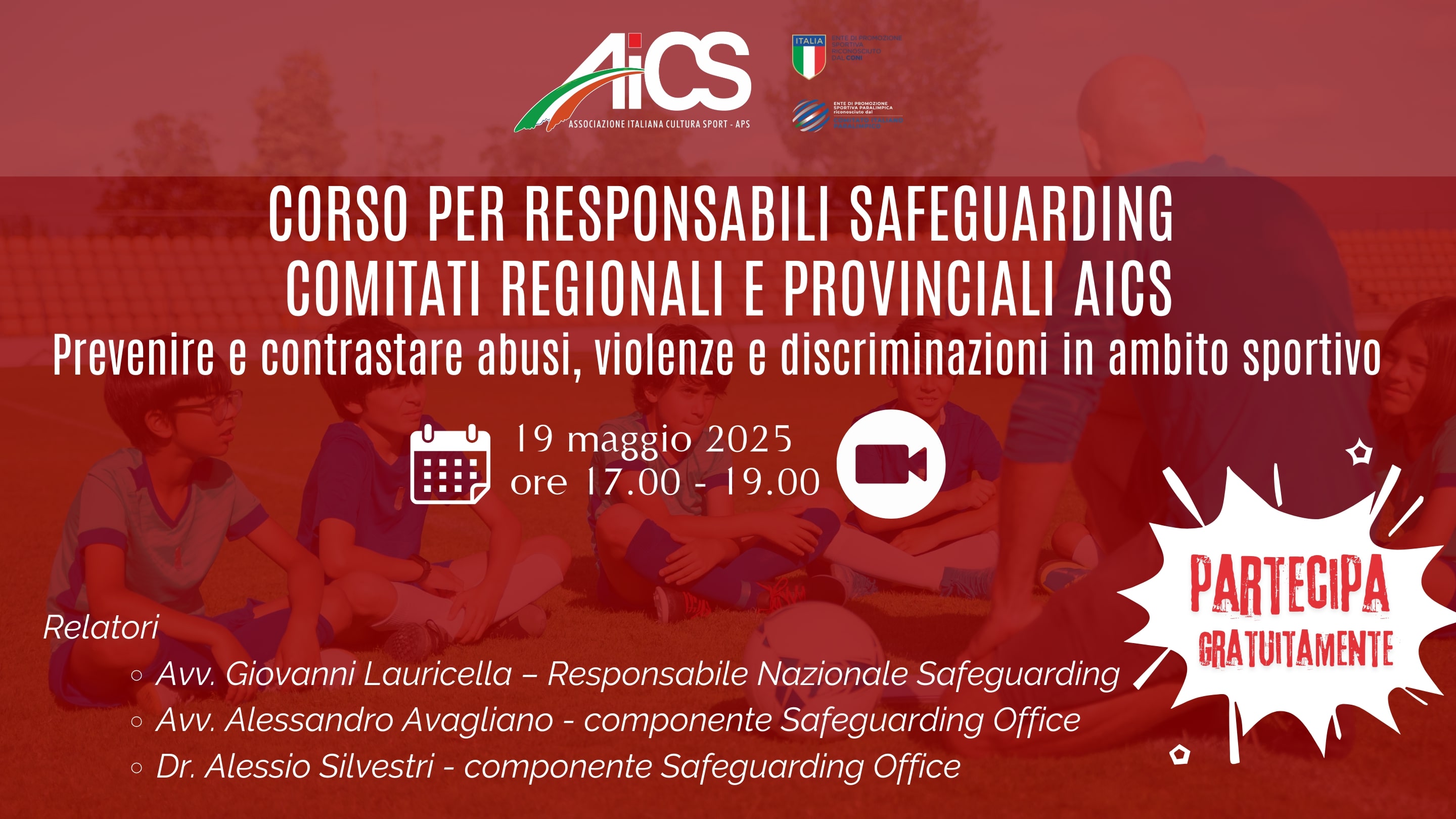 AiCS promuove il doppio webinar formativo dedicato ai Responsabili Safeguarding dei Comitati Provinciali e Regionali AiCS e delle asd-ssd affiliate, con l’obiettivo di prevenire e contrastare abusi, violenze e discriminazioni in ambito sportivo.