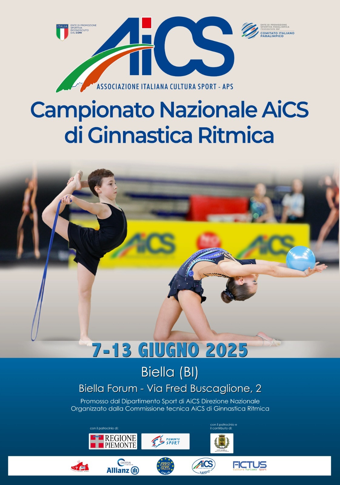 Quasi 1.500 atleti iscritti (tra ginnaste e ginnasti) per almeno il doppio delle presenze attese – tra accompagnatori e tecnici sportivi – e 55 società sportive presenti: sarà un campionato da record quello Nazionale AiCS di Ginnastica ritmica in programma a Biella dal 7 al 13 giugno. Sette giorni di gare no stop aperte al pubblico (ingresso gratuito) e ospiti d’eccezione per esibizioni-spettacolo mozzafiato. Tra le società più note ospiti: l’Eurogymnica di Torino in serie A1 e la Gymnica96 di Forlì in serie A2. Saranno presenti anche la squadra Gold allieve di Eurogymnica Torino qualificate al Campionato di Insieme FGI e la squadra Gold open di Gymnica96 qualificate al Campionato di Insieme FGI.