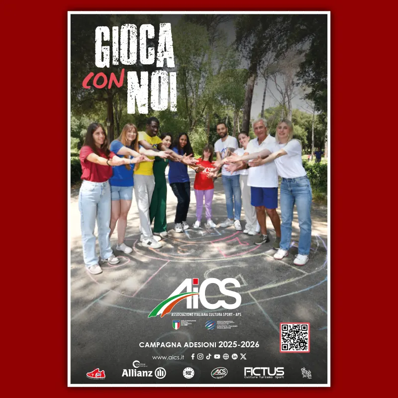 Per il 2025-2026, AiCS lancia la Campagna adesioni #GiocaConNoi: un modo semplice e diretto per ricordare a giovani e meno giovani, ad associazioni e altri enti del Terzo Settore che AiCS è un luogo aperto e accogliente dove persone competenti e affidabili si prendono cura dei propri associati, garantendo loro assistenza e vicinanza.