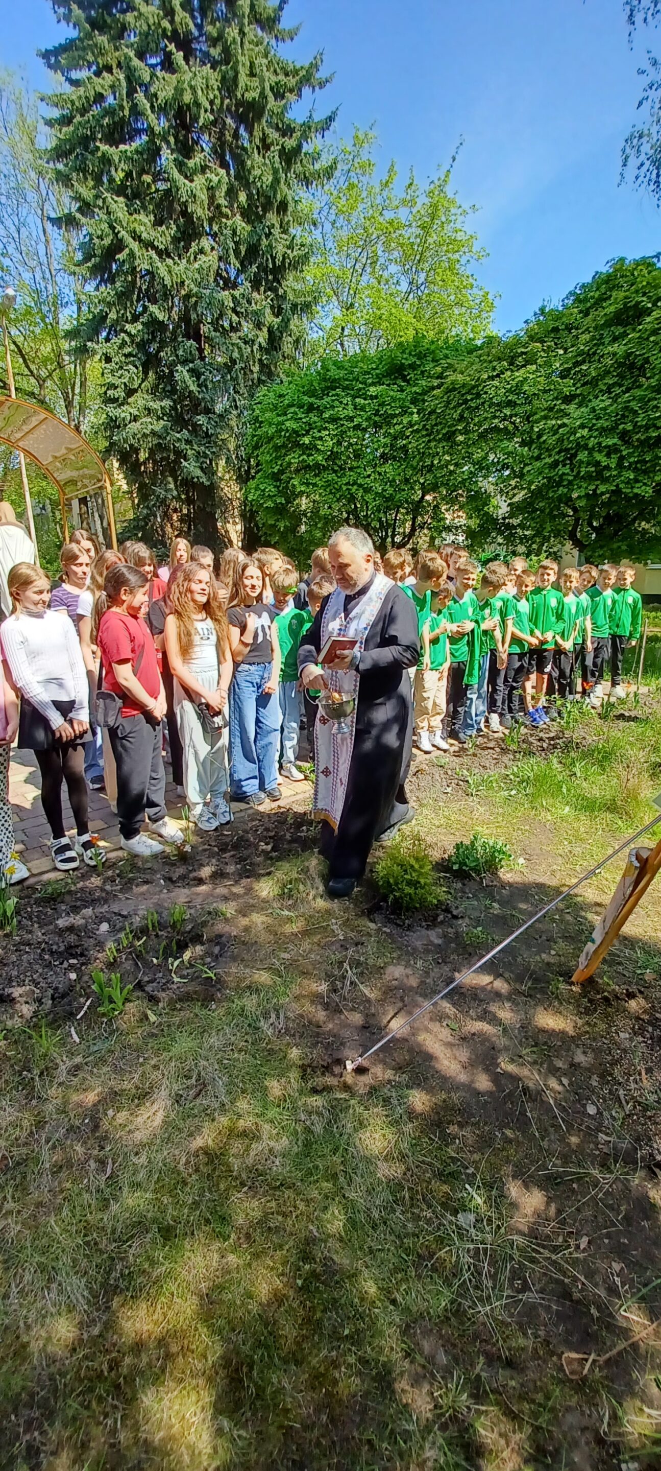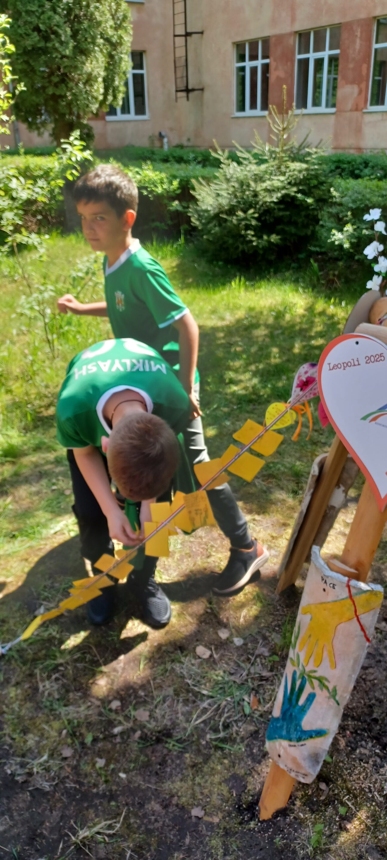 Ero giunto a Leopoli per l’ennesima missione umanitaria, ma pure per realizzare un progetto che era nella mente e nel cuore da tempo. Per cui questo giorno diventa quello migliore per parlare di solidarietà e Pace per questo martoriato Paese. Nella scuola 73 si posa un albero dedicato alla Pace, le tegole che proteggono le case, dipinte dall’artista M. Grazia Musolino, poste intorno alla pianta, hanno il compito di descrivere come questo laterizio può spezzarsi ma non piegarsi, come sta avvenendo per questo popolo.