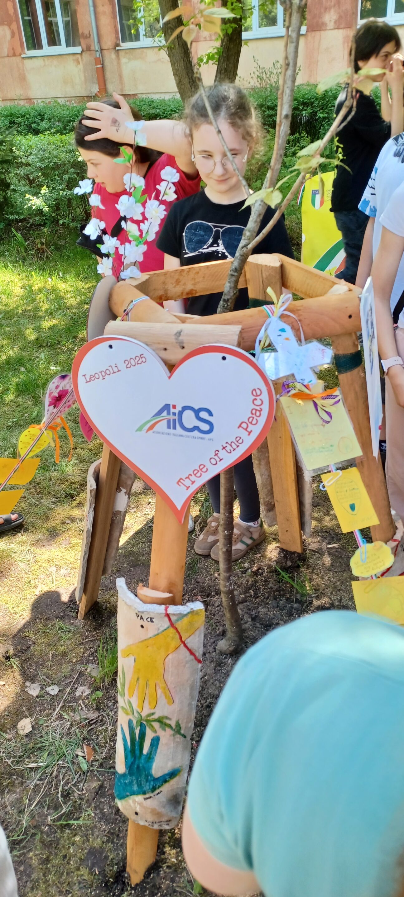 Si appendono subito i tanti messaggi scritti dai bambini italiani di AiCS a cui subito si aggiungono tantissimi pensieri dai numerosissimi ragazzini presenti all’evento, tutti recano lo stesso messaggio, Pace e amore per il popolo ucraino.