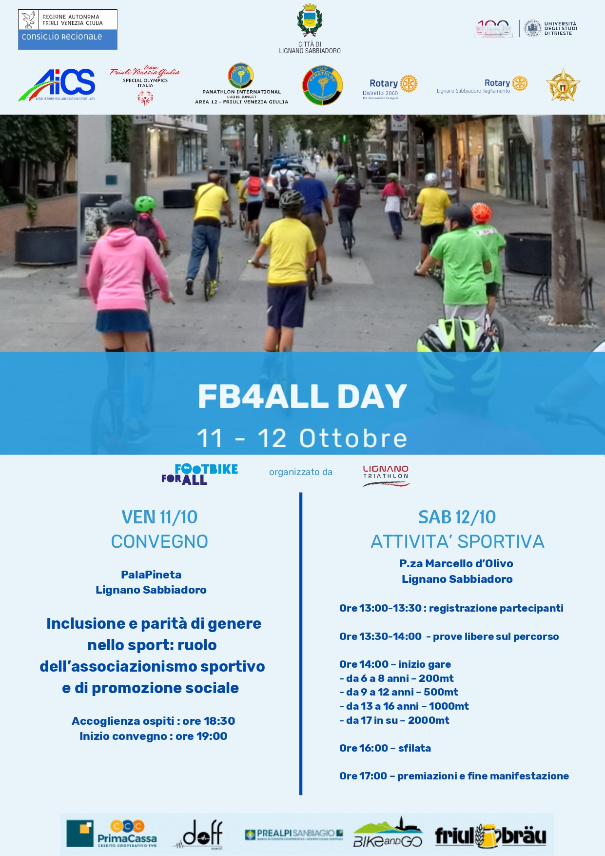 L’11 e il 12 ottobre, la Footbike4All promuove a Lignano Sabbiadoro il FB4ALL Day, convegno e giornata di sport all’insegna dell’utilizzo della footbike come strumento di inclusione.