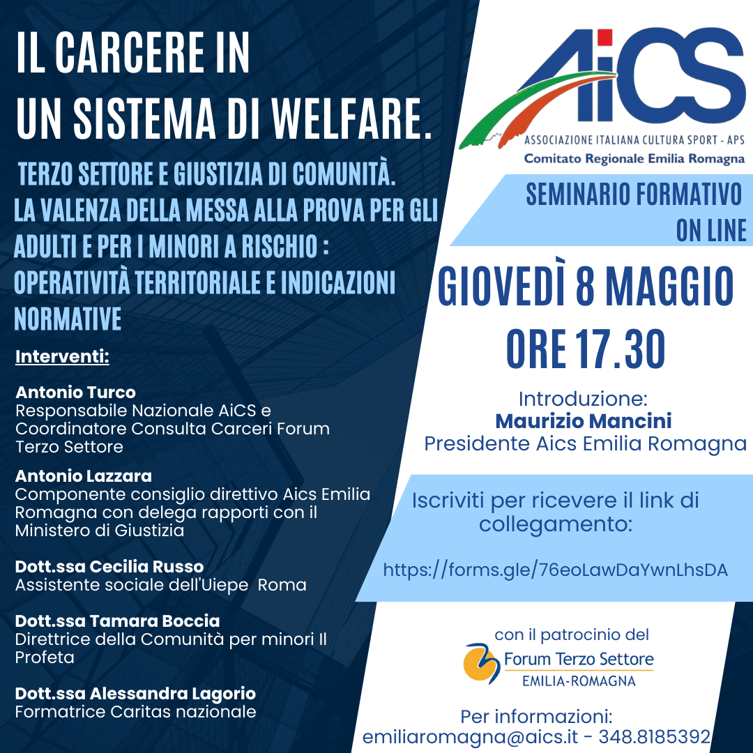 AiCS Emilia Romagna propone l'8 maggio alle 17.30 il seminario formativo on line "Il Carcere in un Sistema di Welfare:...