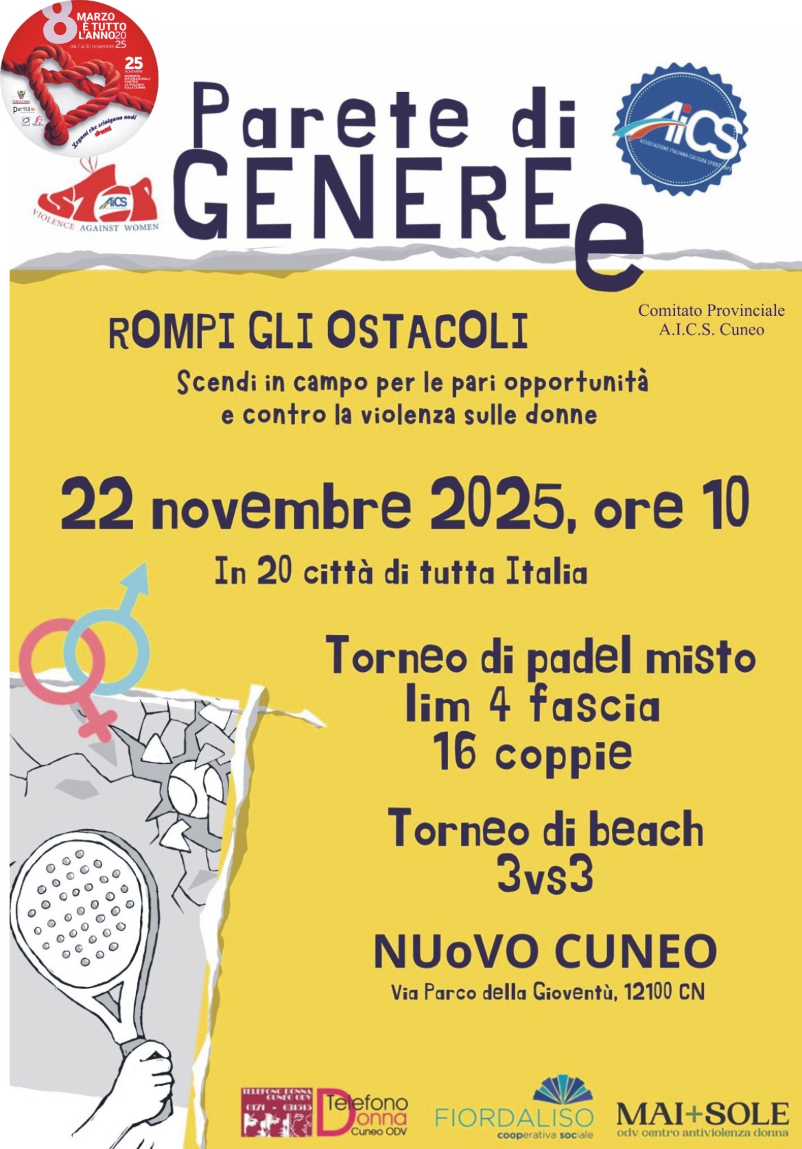 AiCS Cuneo aderisce a Parete di genere, flash mob sportivo di padel promosso dalla commissione di parità di AiCS...