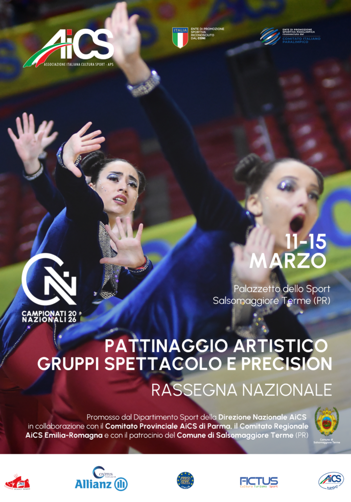 Sono ancora aperte le iscrizioni alla Rassegna Nazionale AICS di Pattinaggio Artistico – Gruppi Spettacolo e Precision, in programma dall’11 al 15 marzo 2026 presso il Palazzetto dello Sport di Salsomaggiore Terme (PR).