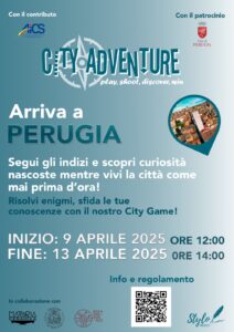 AiCS Perugia porta in città City Adventure l’innovativa e originale App che trasforma la visita della città in una divertente caccia al tesoro che concilia cultura, turismo e valorizzazione del territorio. Per celebrare il lancio dell’App, AiCS Perugia organizza un’intrigante competizione: dal 9 al 13 aprile, gli utenti si sfideranno accumulando punti lungo il percorso che AICS Perugia ha tracciato e che mette in luce non solo la bellezza della Città, ma anche le attività artigianali e commerciali che ne caratterizzano l’identità. Al termine della sfida, verranno premiati i cinque partecipanti con punteggio più alto alle ore 17:00 presso il Museo del Capitolo. City Adventure disponibile gratuitamente su Google Play Store e App Store dal 9 aprile 2025 rimarrà comunque sempre attiva.