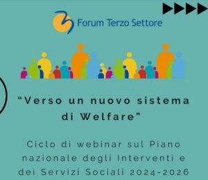 La Consulta Welfare del Forum Nazionale del Terzo Settore ha programmato un ciclo di Seminari, (in forma di Webinar e quindi online) organizzati in focus specifici per argomenti, riguardanti il PIANO NAZIONALE DEGLI INTERVENTI E SERVIZI SOCIALI 2024-26 .