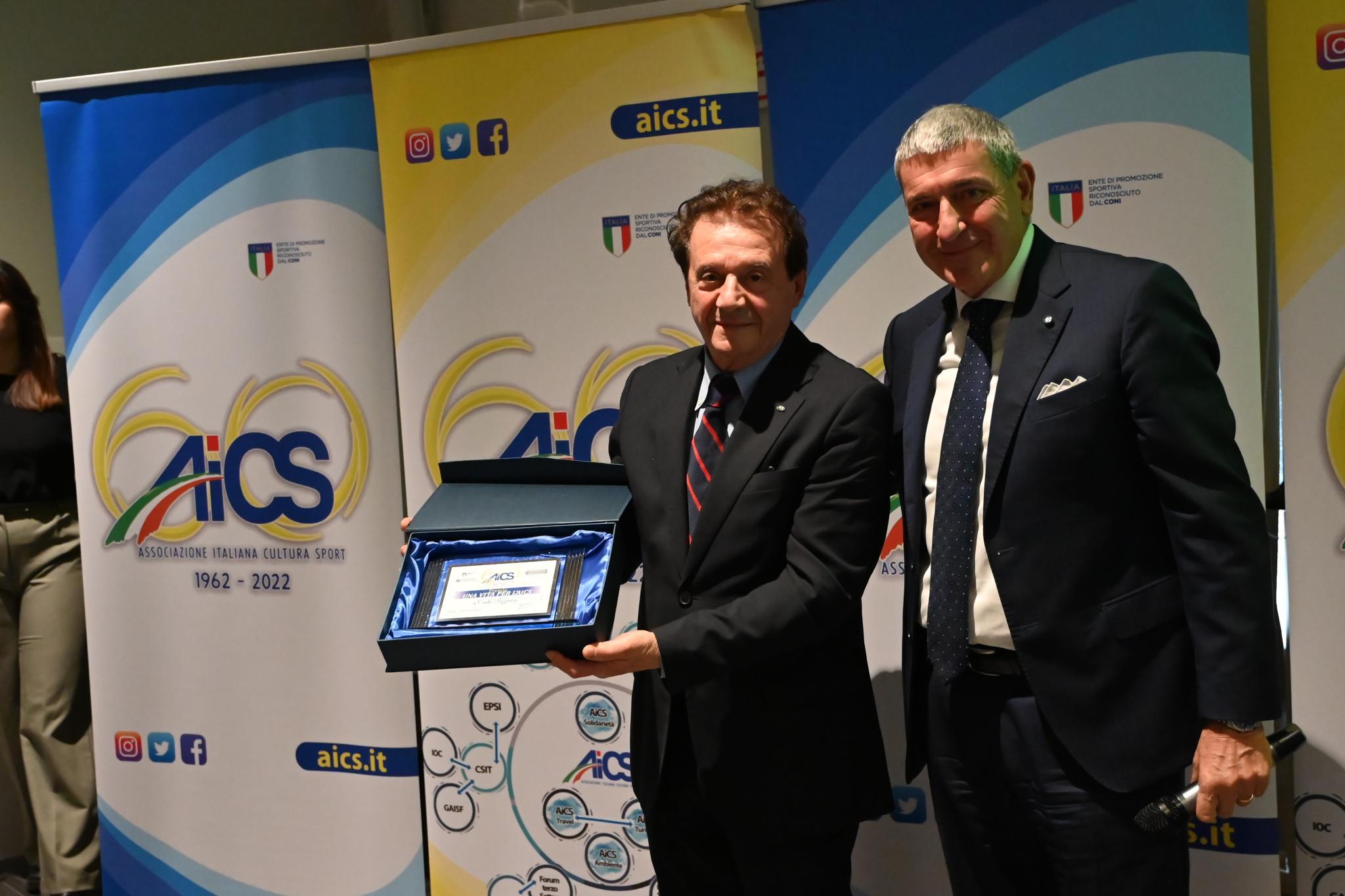 (Nella foto, il presidente Molea consegna il premio Una vita per AiCS a Carlo Pezzanera, nell’edizione 2022 del Premio)