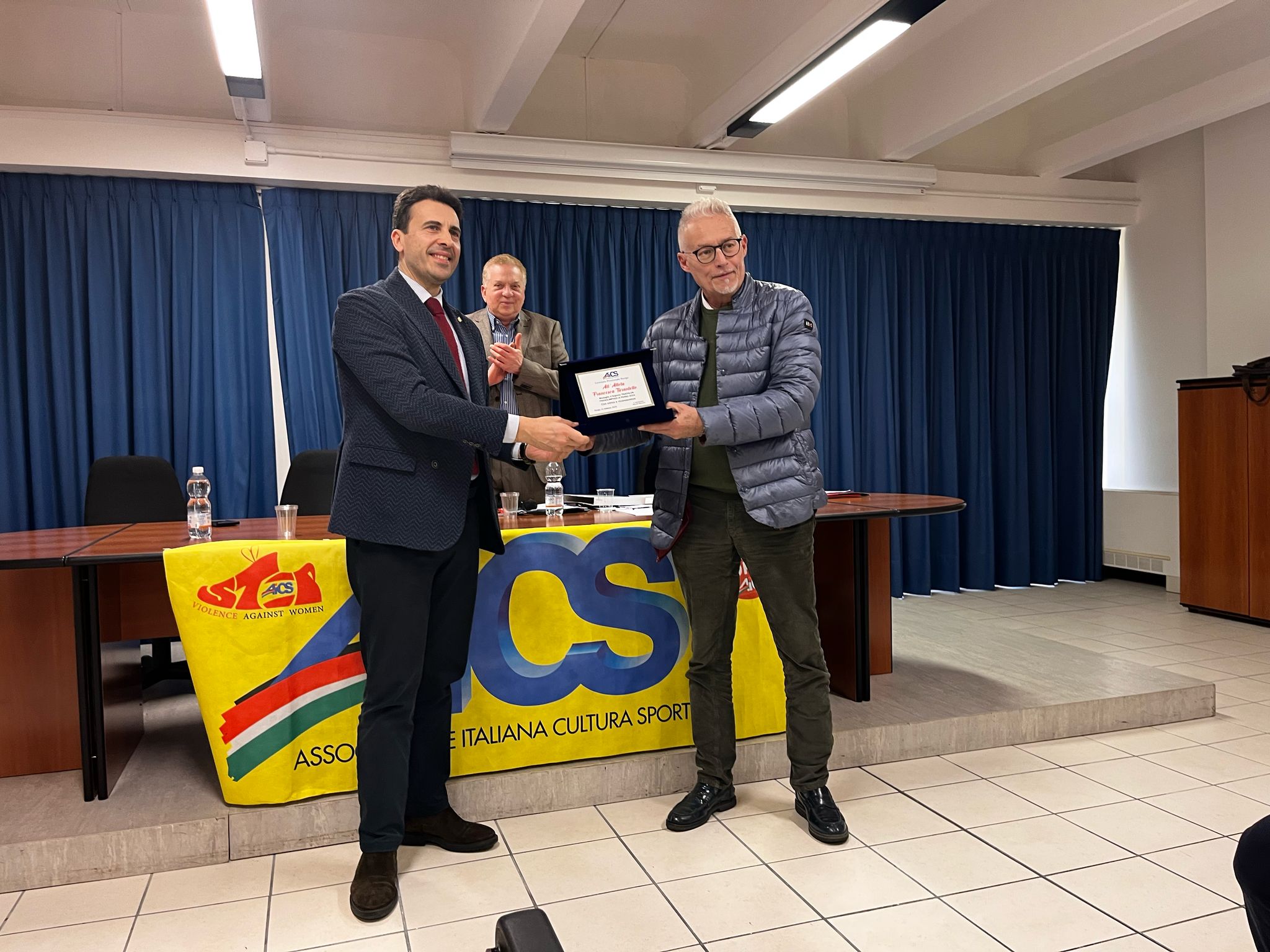 L’Assessore ha poi premiato due campioni Aics che si sono distinti l’anno scorso: Francesca Tarantello, 23 anni, medaglia d’argento di Triathlon alle Paralimpiadi di Parigi e Maurizio Marchetti, doppio titolo ai Campionati italiani Aics Indoor di atletica leggera ad Ancona.