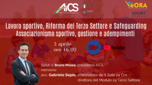Prosegue il percorso di formazione gratuita per i comitati e gli affiliati AiCS. Grazie al progetto E’ Ora! Servizi di aggiornamento e assistenza all’associazionismo sportivo per la ripartenza, AiCS direzione nazionale promuove il secondo webinar informativo su Riforma dello sport, Riforma del Terzo Settore e Safeguarding: l’appuntamento è giovedì 3 aprile dalle 16 alle 18, on line.