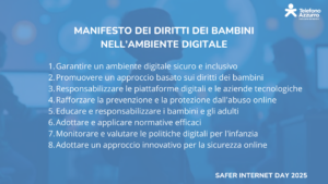 Per questo, in occasione della Giornata internazionale dedicata alla sicurezza online, AiCS sottoscrive il manifesto di Telefono Azzurro sui diritti dei bambini in ambito digitale. Con il manifesto, riconosciamo l’importanza di garantire un ambiente digitale sicuro, inclusivo e rispettoso dei diritti dei bambini. AiCS si impegna quindi a sostenere azioni concrete per proteggere e responsabilizzare i minori online.