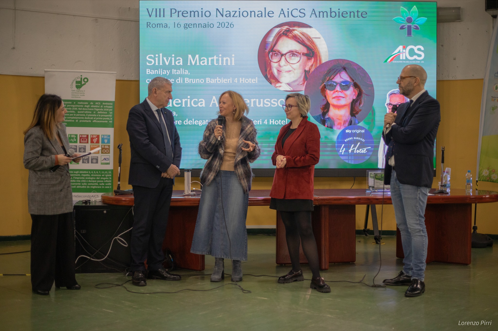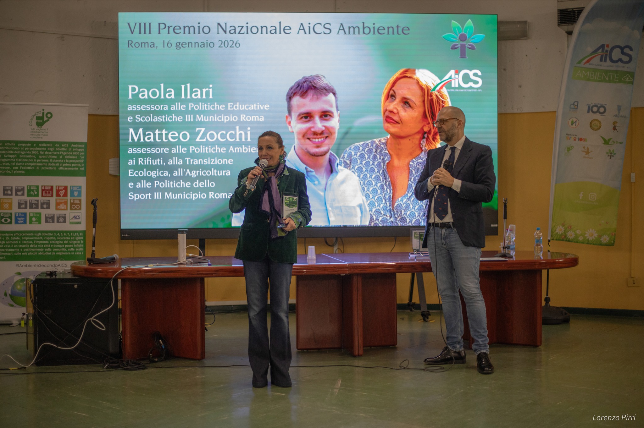 Il Premio AiCS Ambiente si è svolto in collaborazione con il III Municipio di Roma ed è stato consegnato dal presidente nazionale AiCS Bruno Molea, dal presidente di AiCS Ambiente Andrea Nesi e dalla vicepresidente del III Municipio Paola Ilari.