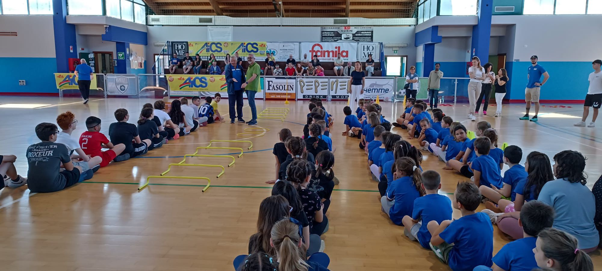 Al ‘Palasport Ballarin’ di Valli sono stati predisposti più percorsi da gioco per tracciare una mappa sportiva e far turnare, ogni 30 minuti, le classi per offrire un’esperienza indimenticabile al sapore di calcio a 5, minivolley, danza hip hop, percorsi motori e l’incontro con l’ecologia agonistica il “rifiuthlon” una caccia di carta e cartoncini per bambin* nel ruolo di moschettieri dell’ambiente. Con loro genitori e maestri felici per i progressi dei piccoli.