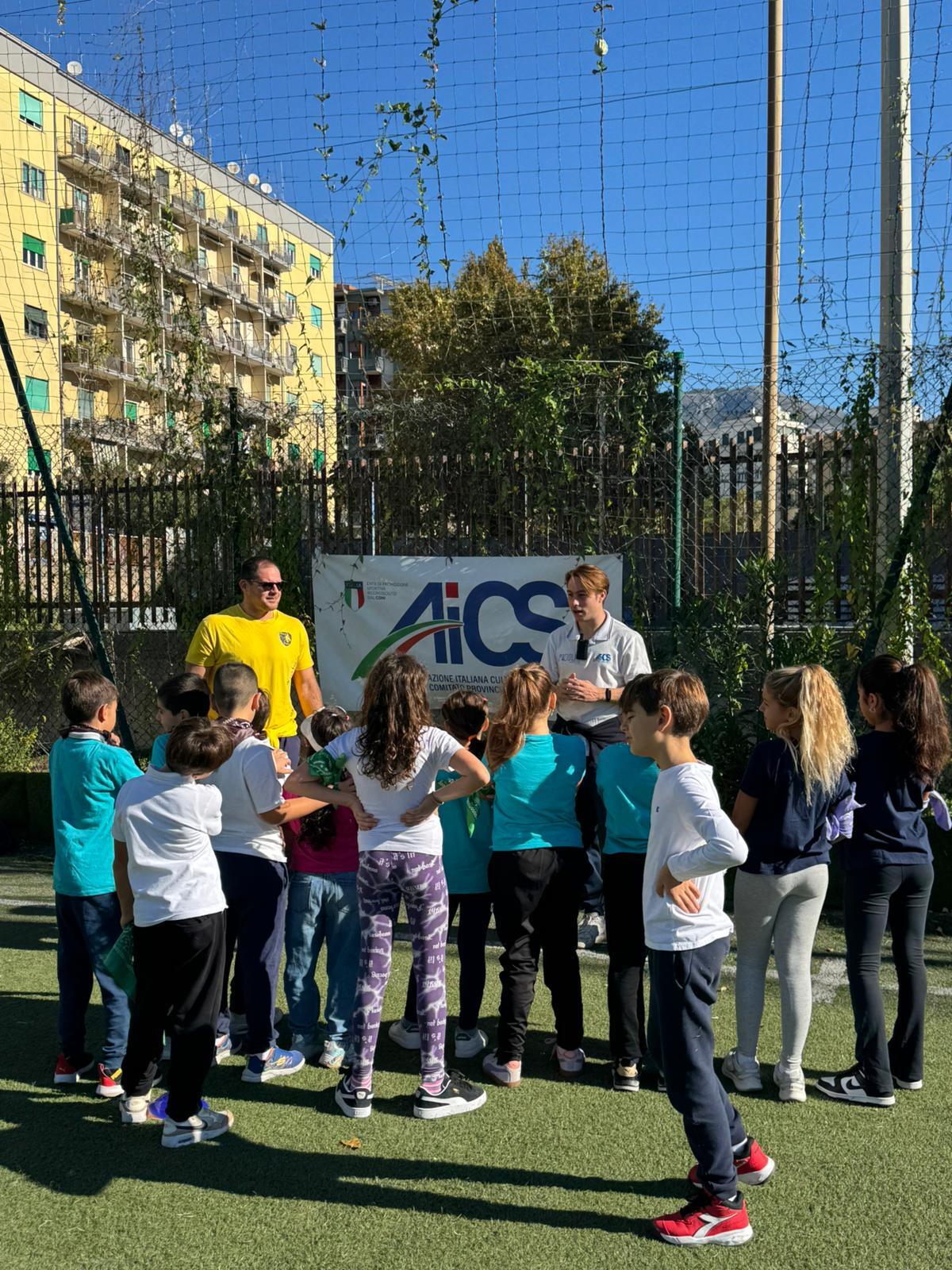 Sport all’aria aperta e merenda sana: un mix perfetto per assicurarsi salute e benessere. Questo l’obiettivo dell’open day sportivo con cui, sabato 11 ottobre, il comitato AiCS di Salerno ha ufficialmente dato il via alle attività di “Sport di squadra e alimentazione sana a scuola”, progetto nazionale promosso da AiCS Direzione Nazionale in collaborazione con Associazione medici diabetologi e AiCS Ambiente, con il supporto finanziario del Ministro per lo Sport e i Giovani attraverso il Dipartimento per lo Sport della Presidenza del Consiglio dei Ministri e iniziativa inserita nell’ambito dell’Education Programme Gen26, attività alla generazione di giovani che nel 2026 vivrà da protagonista le Olimpiadi e Paralimpiadi Milano Cortina 2026.