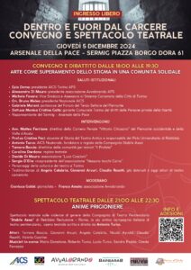 Giovedì 5 dicembre, alle ore 18.00, presso l’Arsenale della Pace – Sermig, si terrà il convegno “Arte come superamento dello stigma in una comunità solidale”, con esperti, operatori e attori impegnati nel teatro carcerario. Alle 21.00 seguirà lo spettacolo “Anime prigioniere”, con ingresso gratuito per la cittadinanza, un’opera dedicata al tema delle violenze di genere e interpretata da attori, ex detenuti e operatori del settore.