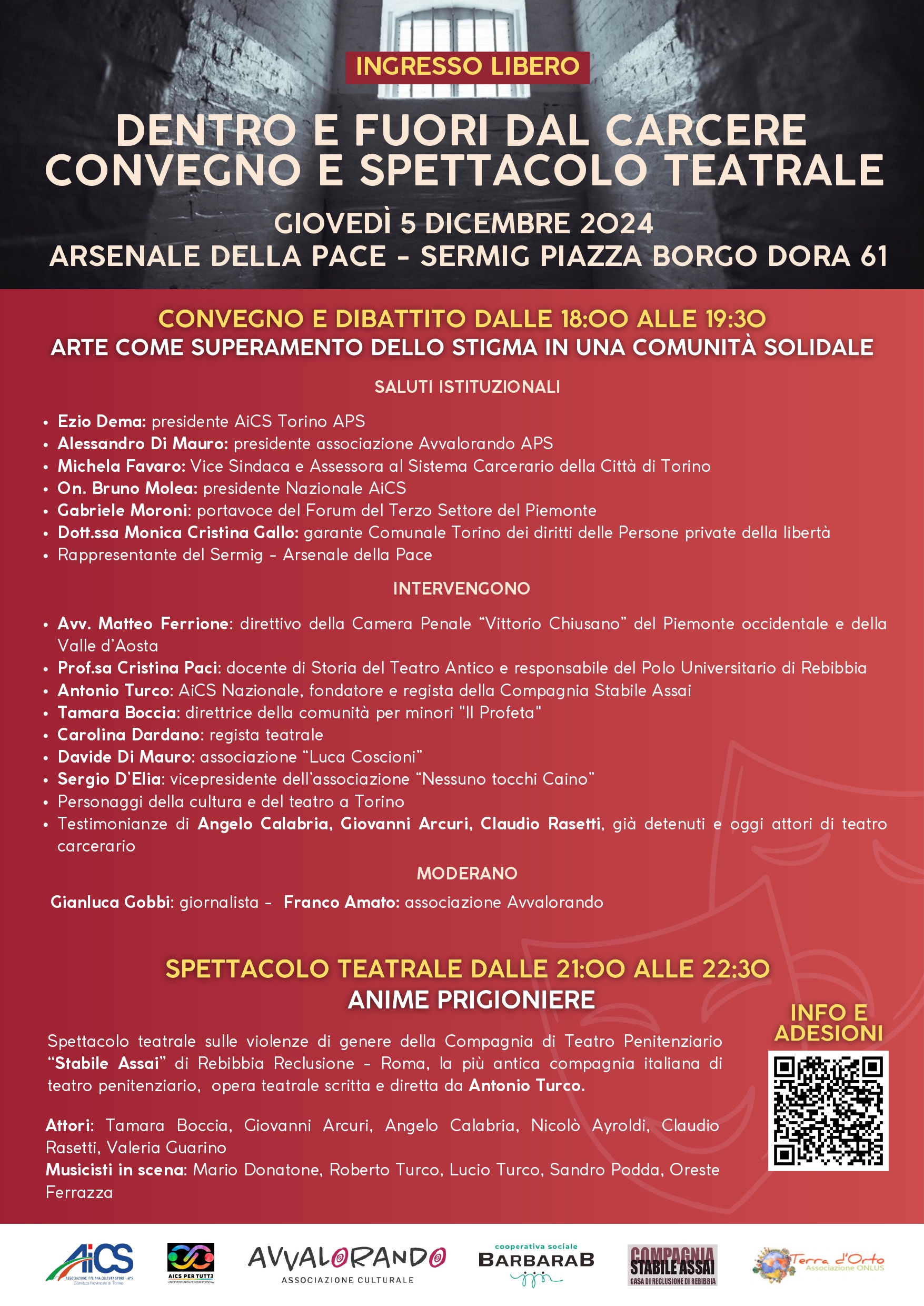 L’iniziativa, promossa da AICS Torino, Avvalorando APS e Cooperativa Barbara B, mette in luce il valore del teatro come strumento di riabilitazione e reinserimento sociale, affrontando il tema delle condizioni carcerarie e la necessità di superare lo stigma sociale.