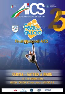 La Direzione Nazionale – Dipartimento Sport – ha programmato, dal 12 al 15 giugno 2025 a Cervia (RA) e Gatteo a Mare (FC), la Festa del Calcio AiCS che concluderà la stagione sportiva 2025. Tale evento racchiuderà in un’unica soluzione le finali nazionali dei Campionati di Calcio a 11, Calcio a 5 Open, Calcio a 5 Femminile, Calcio a 7 Open, Calcio a 7 Over 40.