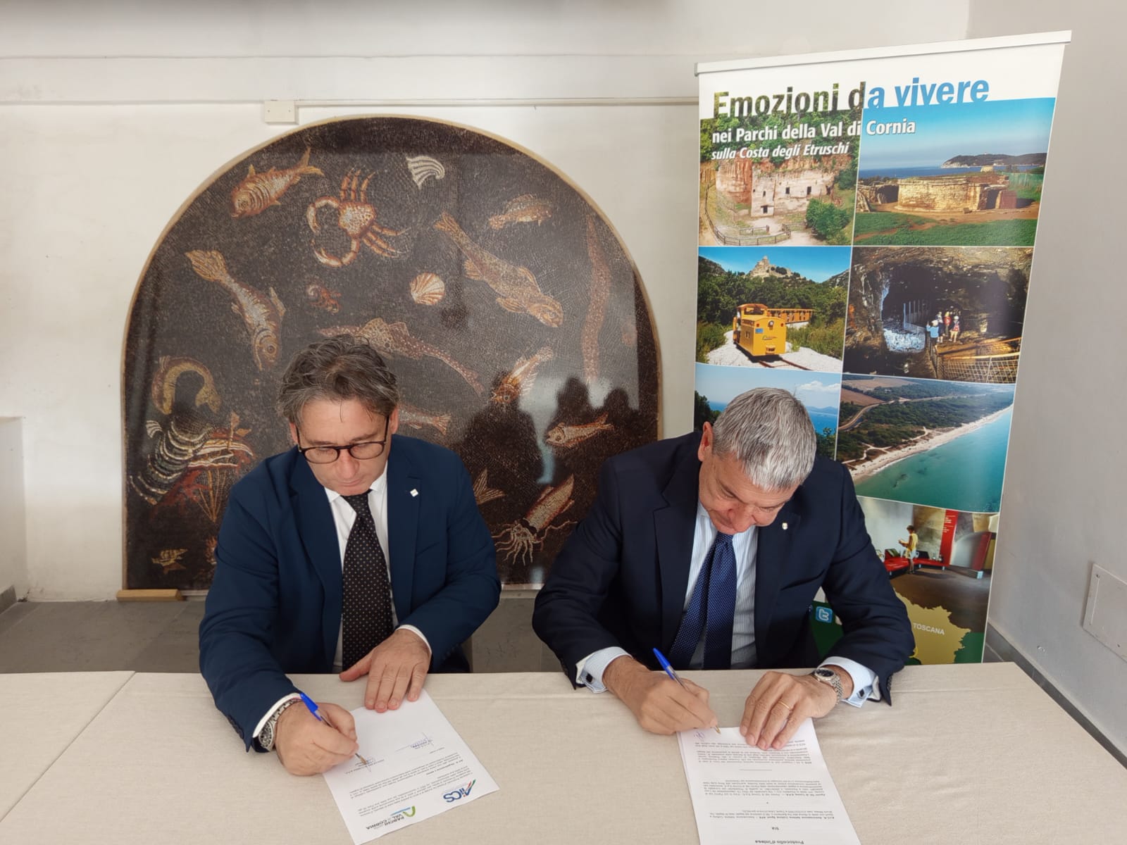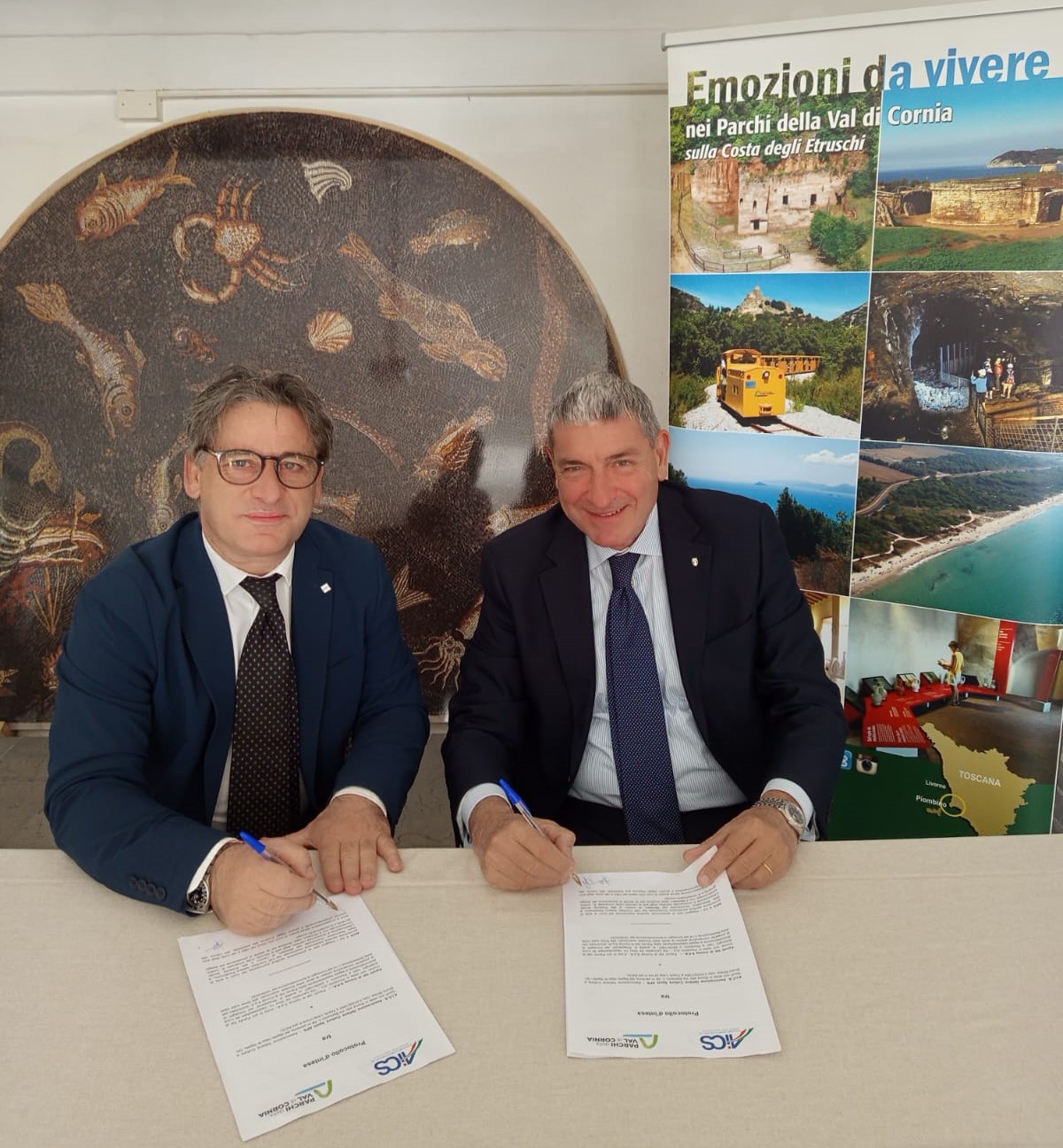 L’accordo è stato sottoscritto negli spazi del Museo archeologico di Territorio di Populonia dal presidente di AiCS Bruno Molea e il presidente della Parchi Val di Cornia SpA Luca Ardenghi.