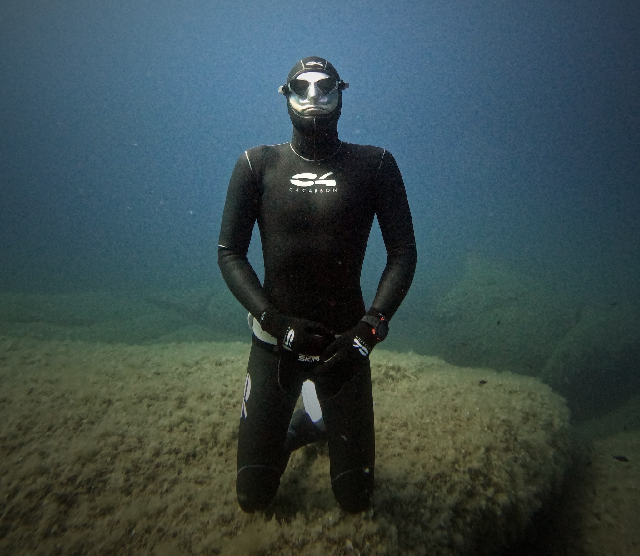 “Un apneista scende per guardarsi dentro”, che sintetizza la sua visione dell’apnea come viaggio interiore oltre che fisico.