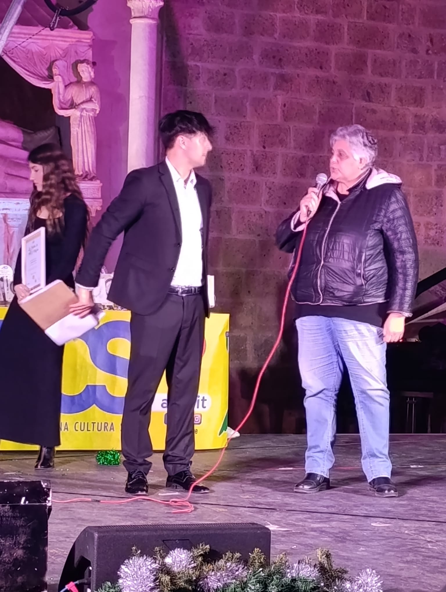 Federica Chiricozzi, presidente del Comitato provinciale AICS di Viterbo, ha rivolto un ringraziamento ai giovani del servizio civile che si sono prodigati in maniera eccellente alla buona riuscita dell’evento, all’amministrazione comunale di Capranica e al Sindaco Pietro Nocchi per la collaborazione che rivolge alle associazioni AICS e alle loro iniziative. Ha poi rivolto parole di ringraziamento a Francesco Laurenti assessore al Comune di Ronciglione. Federica Chiricozzi ha quindi concluso la serata-spettacolo con un ringraziamento speciale allo sponsor DOLCE TUSCIA, che ha addolcito la serata con i panettoni che hanno ricevuto il premio MAXIMO per il miglior panettone al cioccolato del 2025, e altri riconoscimenti culinari.
