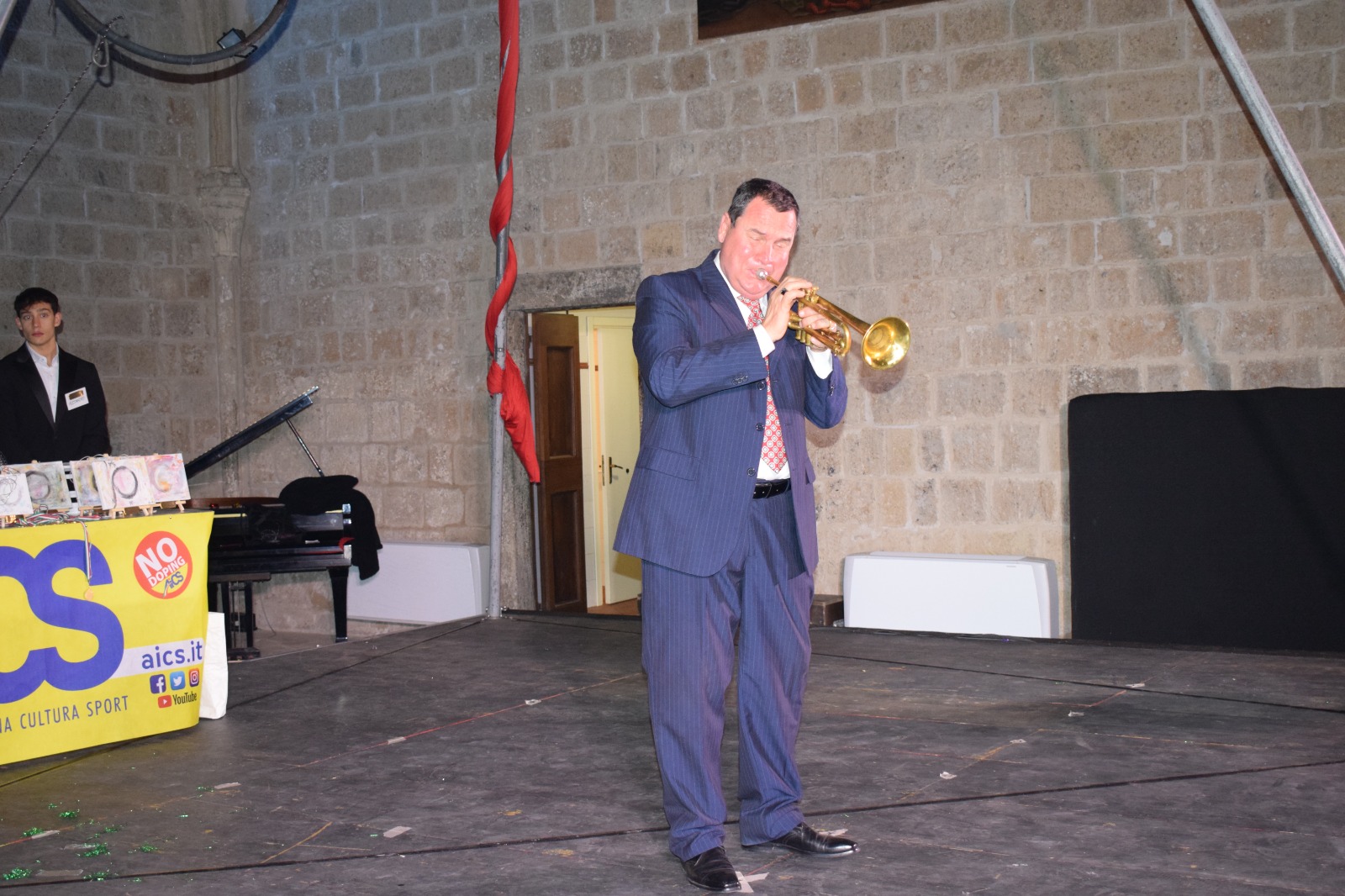 Hanno arricchito la serata con interpretazioni canore: Leonardo Modanesi presentatore e showman vincitore per il canto del primo premio alla grande manifestazione spettacolo AICS “ World Dance Competition of People & Cultures “ svoltasi a Montecatini Terme; Niccolò Puccica vincitore del contest “Il Guerriero 2025” a Ronciglione. Niccolò è stato accompagnato dal meraviglioso ballerino, amico dell’AICS Franco Cherubini, con la coreografia creata da Federica Chiricozzi, presentando le performances “Il Guerriero” e “Proteggiti da me”, realizzate per il contest dedicato a Marco Mengoni; il gruppo di cantanti dell’associazione All Stars diretto dalla maestra di canto Francesca Maria Lotà con molti brani, accompagnate dalla ballerina Giada Gubinelli che ha danzato un brano del Flamenco; la Maestra di canto Barbara Ghiloni amica storica dell’AICS e prima insegnante di Marco Mengoni, di Angelo Loddo che ha intrepretato un brano di Franco Califano.