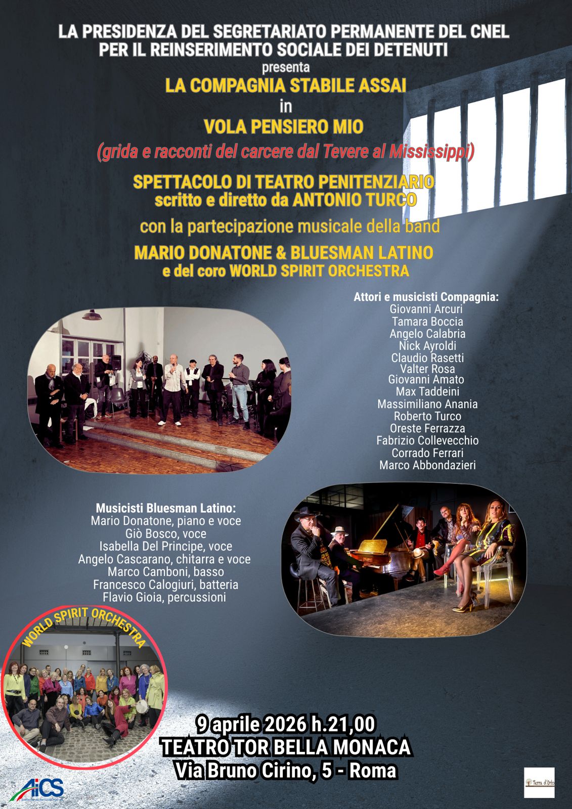 Uno spettacolo che unisce teatro, musica e riflessione sociale per raccontare il tema della giustizia riparativa e del reinserimento dei detenuti. La Compagnia Stabile Assai, storica realtà del teatro penitenziario italiano, porta in scena “Vola pensiero mio – grida e racconti del carcere dal Tevere al Mississippi”, scritto e diretto da Antonio Turco.